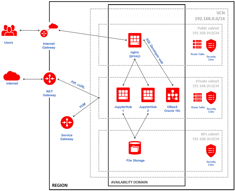 Python 3 sandbox in Oracle Cloud with JupyterLab as notebook. A Compute Instance with Virtual Cloud Network setup.